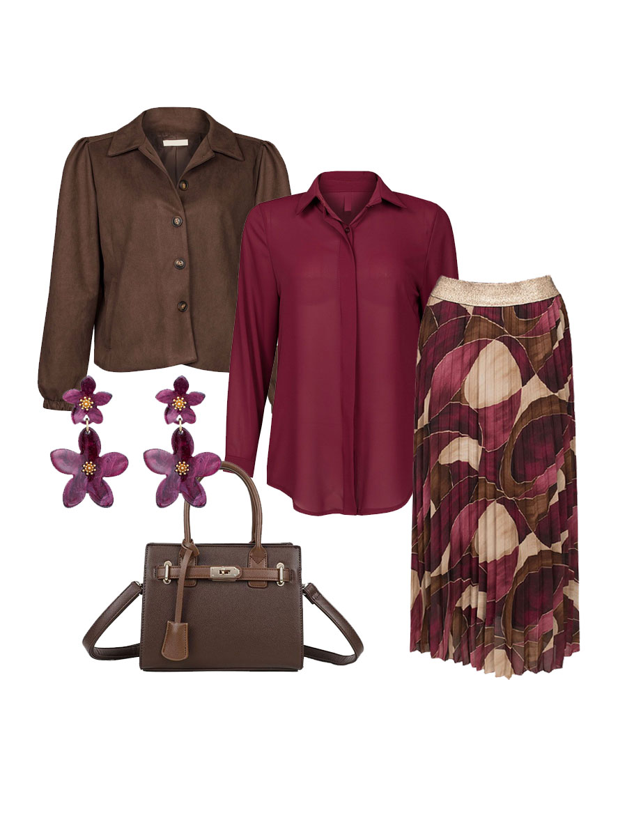 Deze prachtige blouse in bordeaux is een echte musthave voor je garderobe. De luchtige, soepelvallende stof voelt heerlijk comfortabel aan en geeft je outfit direct een chique uitstraling. Dankzij het klassieke model met kraag, lange mouwen en blinde knoopsluiting is deze blouse zowel zakelijk als casual perfect te combineren. De blouse is one size en te dragen voor maten S (36) t/m L (40).