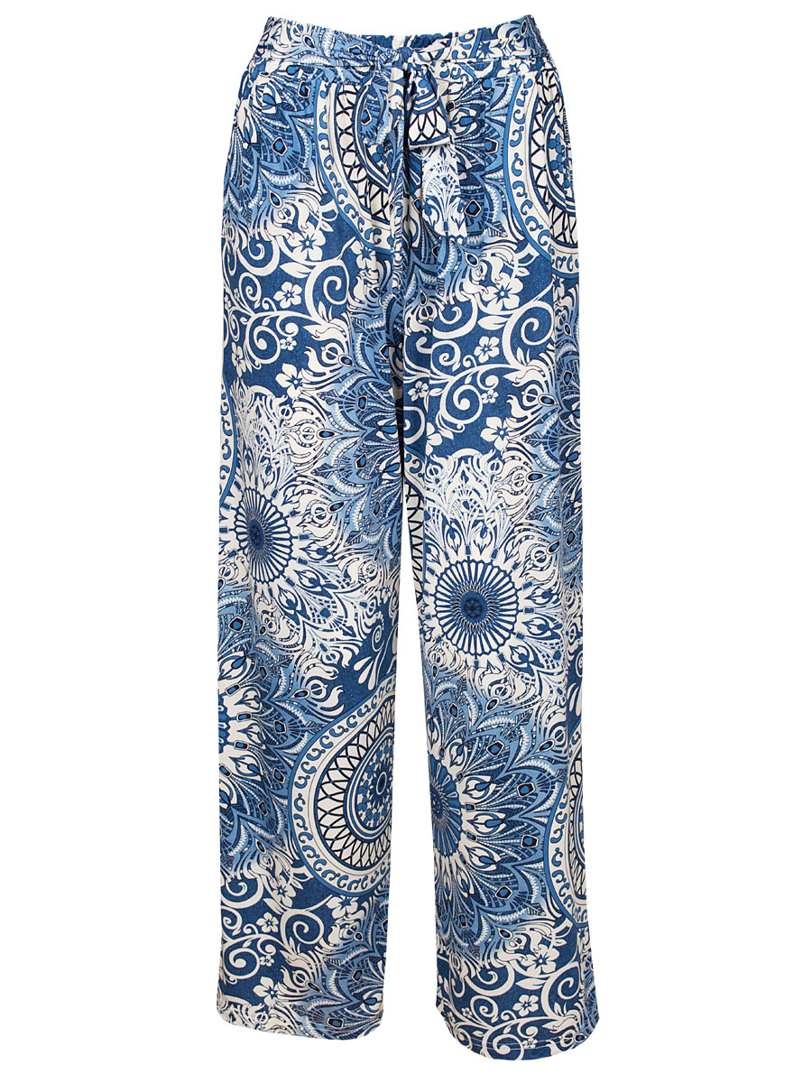 Deze blauwe broek met mooie print draagt heerlijk door de stretch. De broek met rechte pijpen heeft een fraaie pasvorm en sluit mooi aan door de elastische taille. Deze broek is van travelstof en dát is ideaal: heerlijk draagcomfort door de stretch, kreukvrij en na de was snel droog. De broek staat erg leuk als set met de blauwe traveltop die dezelfde print heeft. De printverdeling kan per exemplaar verschillen.