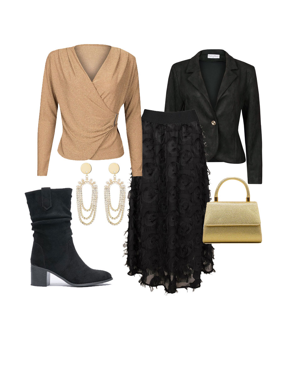 Met deze rok steel je zeker de show op elk feestje. Deze chique zwarte rok heeft een patroon waar sierlijke draadjes langslopen en uitsteken voor een speels effect. De rok heeft een onderrok die iets korter is.