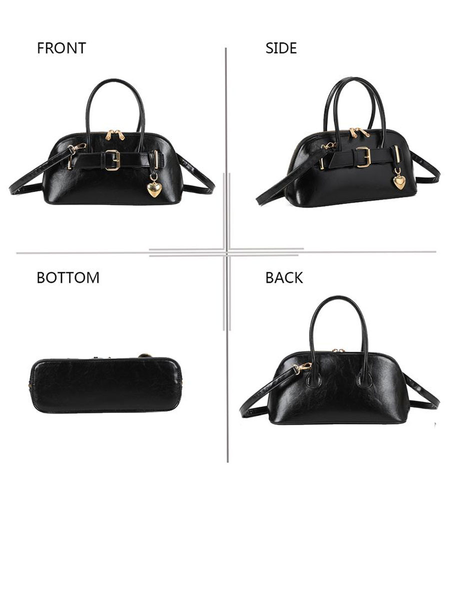 Details: lederlook, verstelbare en afneembare schouderband, goudkleurige siergesp met hartje, binnenkant 1 ritsvakje