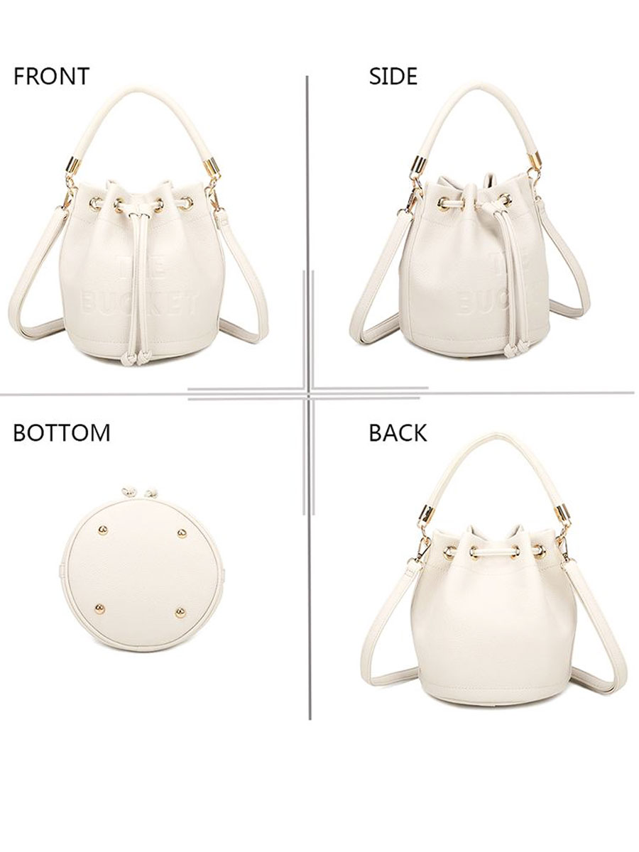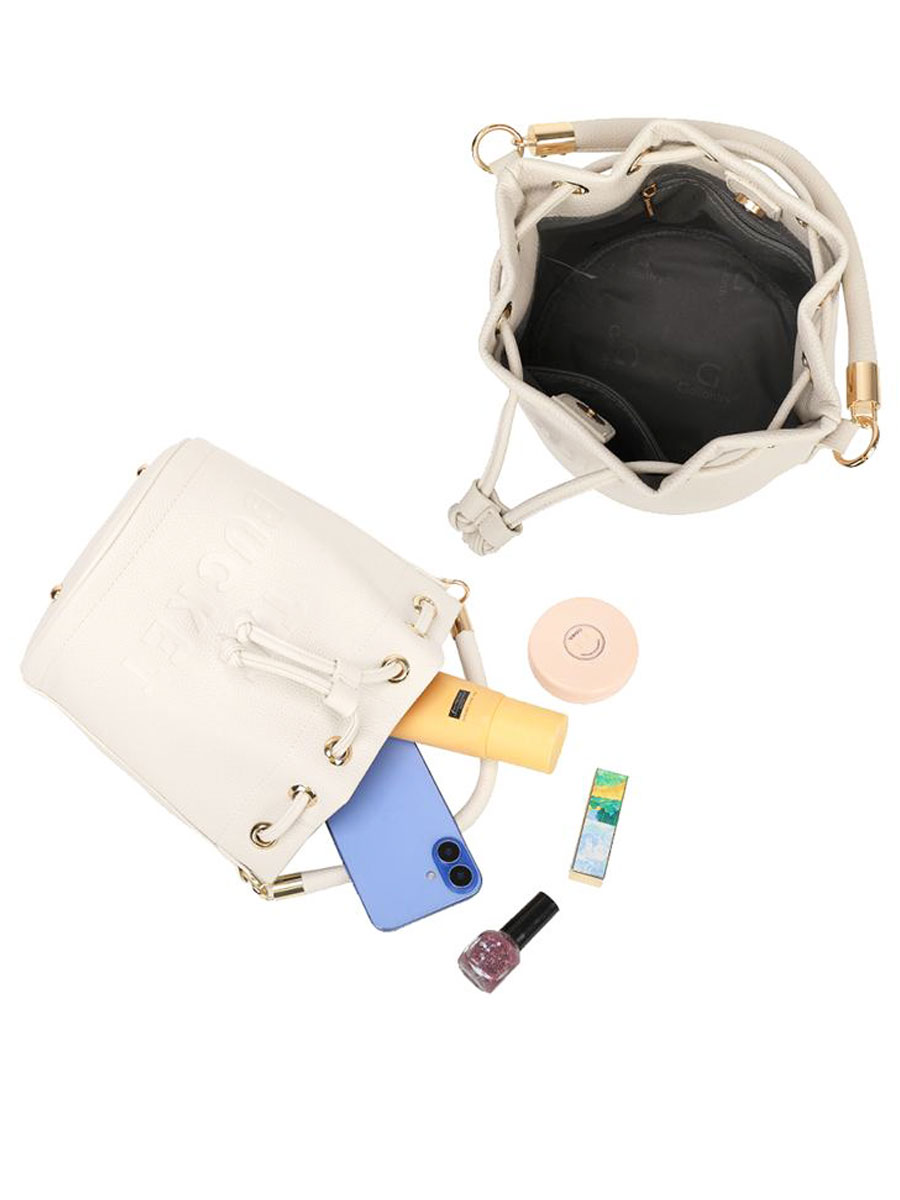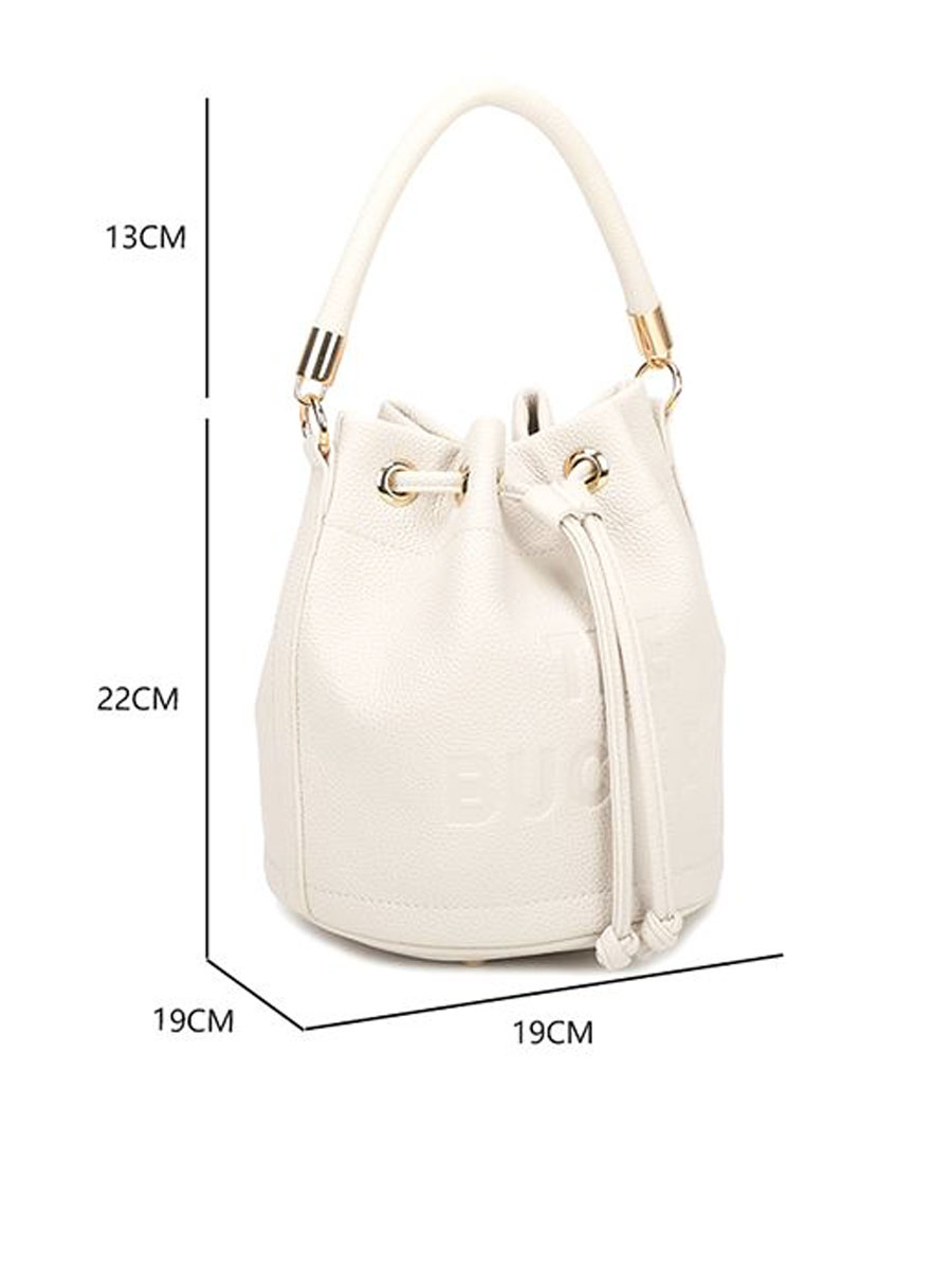 Deze trendy bucketbag in off-white heeft een verstelbare en afneembare schouderband zodat je hem ook als handtas kan dragen. De tas kan je dichtsnoeren en heeft ook een magneetsluiting, binnenkant heeft een open vakje en een vakje met ritssluiting.