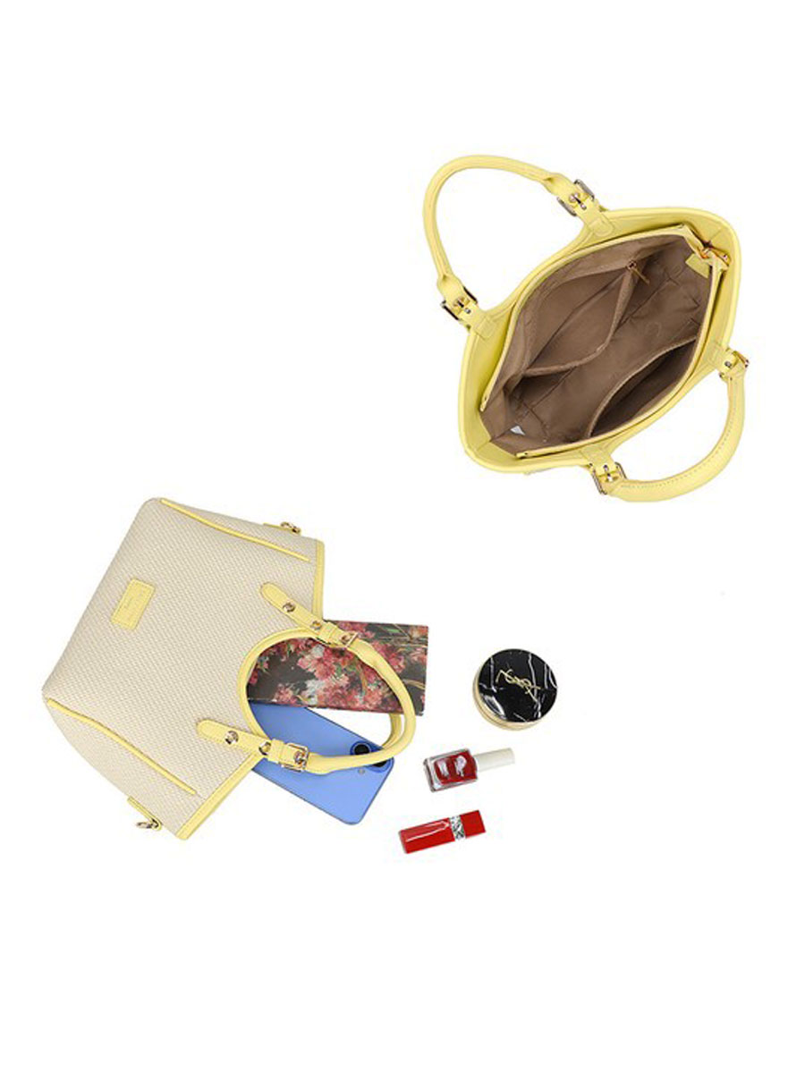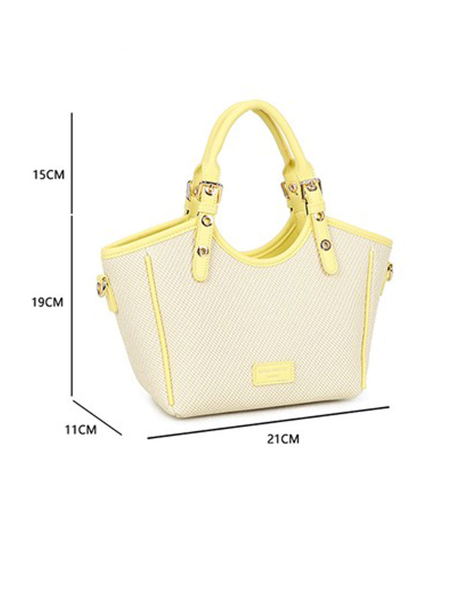 Deze frisse en stijlvolle tas in een zachte gele tint is de perfecte aanvulling op je outfit. Het elegante ontwerp combineert een moderne uitstraling met praktische details, waardoor je hem zowel dagelijks als bij een speciale gelegenheid kunt dragen. De tas is voorzien van stevige handvatten én een afneembare schouderband, zodat je hem comfortabel in de hand of crossbody kunt dragen. De ritssluiting zorgt ervoor dat je spullen veilig opgeborgen blijven. Binnenin vind je een overzichtelijke indeling met één open vak voor snelle toegang en een handig ritsvakje voor kleinere essentials. Een ideale tas voor wie houdt van een combinatie van fashion en functionaliteit!