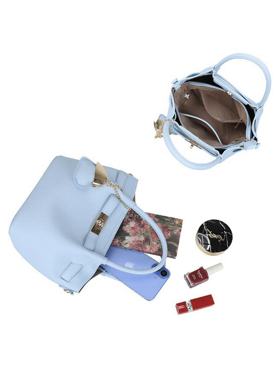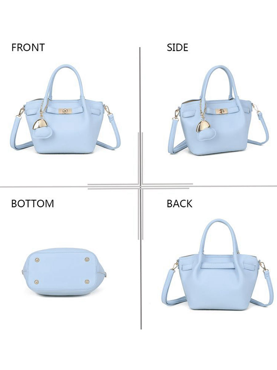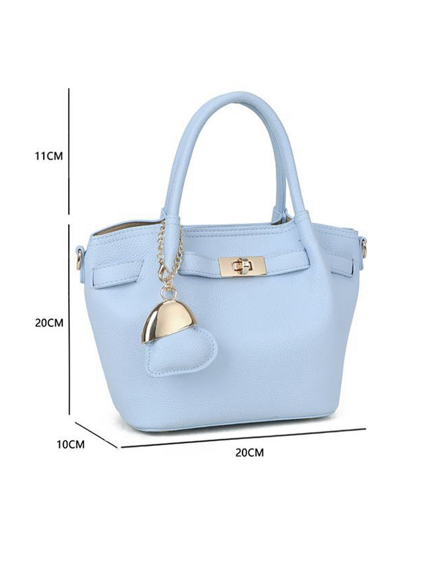 Deze elegante blauwe tas is een stijlvolle must-have die moeiteloos klasse en functionaliteit combineert. De zachte kleur en luxe afwerking geven de tas een chique uitstraling, terwijl de speelse, afneembare sleutelhanger met hartje zorgt voor een trendy touch. De tas is voorzien van zowel stevige handvatten als een afneembare en verstelbare schouderband, waardoor je hem op verschillende manieren kunt dragen. De combinatie van een magneetsluiting en ritssluiting zorgt ervoor dat je spullen veilig én gemakkelijk toegankelijk blijven. Binnenin biedt de tas volop ruimte en overzicht dankzij drie open vakken en een extra open- en ritsvakje voor kleinere items zoals je sleutels of telefoon. Een perfecte tas voor dagelijks gebruik met een fashionable uitstraling!