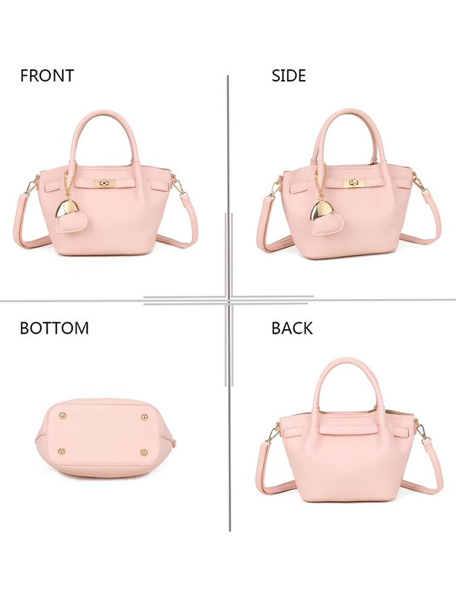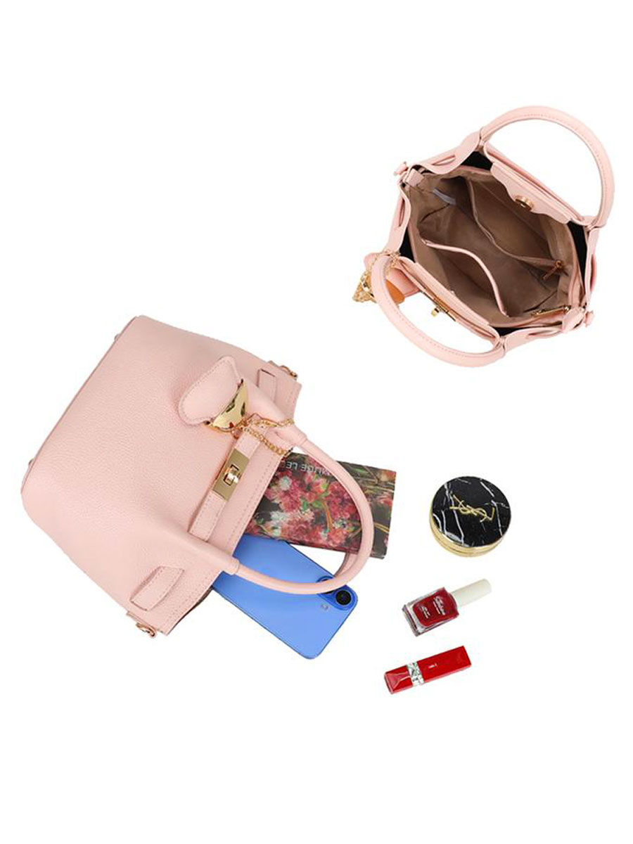 Deze elegante roze tas is een stijlvolle must-have die moeiteloos klasse en functionaliteit combineert. De zachte kleur en luxe afwerking geven de tas een chique uitstraling, terwijl de speelse, afneembare sleutelhanger met hartje zorgt voor een trendy touch. De tas is voorzien van zowel stevige handvatten als een afneembare en verstelbare schouderband, waardoor je hem op verschillende manieren kunt dragen. De combinatie van een magneetsluiting en ritssluiting zorgt ervoor dat je spullen veilig én gemakkelijk toegankelijk blijven. Binnenin biedt de tas volop ruimte en overzicht dankzij drie open vakken en een extra open- en ritsvakje voor kleinere items zoals je sleutels of telefoon. Een perfecte tas voor dagelijks gebruik met een fashionable uitstraling!