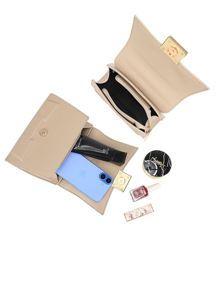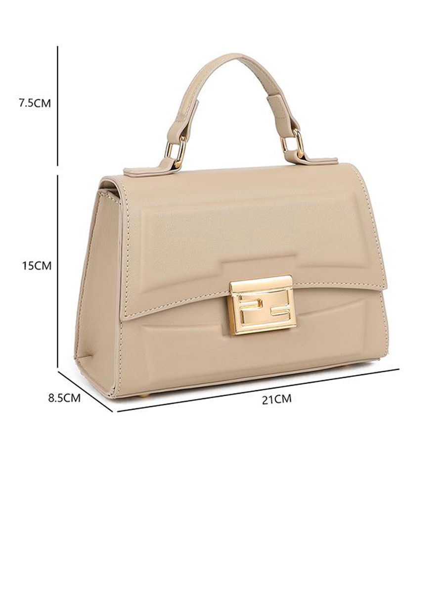 Dit chique stevige beigekleurige schoudertasje in lederlook heeft aan de voorkant een patroon in reliëf. De tas heeft een verstelbare en afneembare schouderband zodat je hem ook als handtas kan dragen. De tas sluit met een mooie goudkleurige magneet- en ritssluiting.