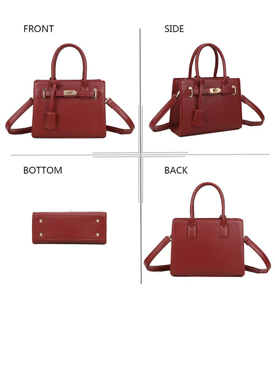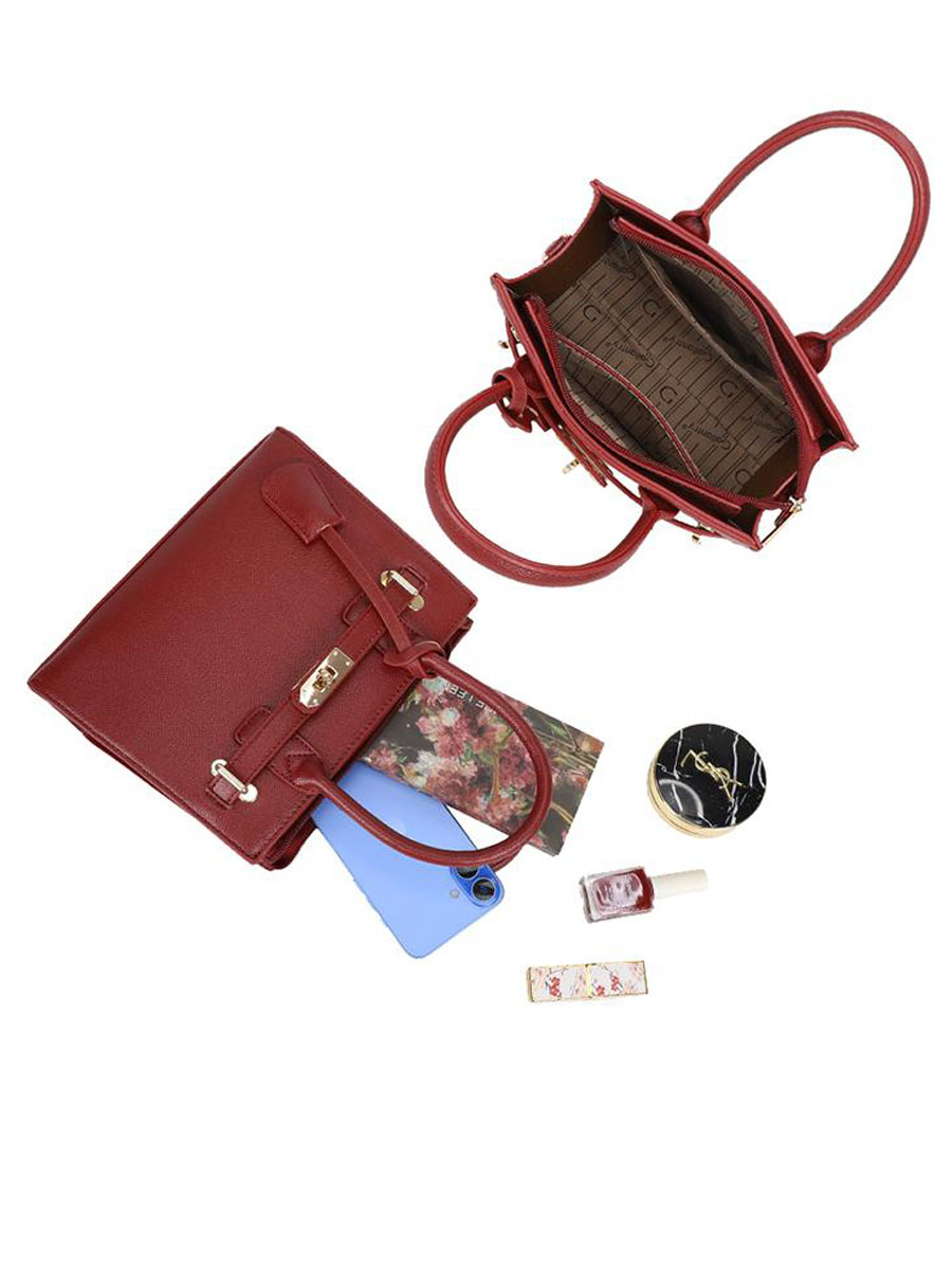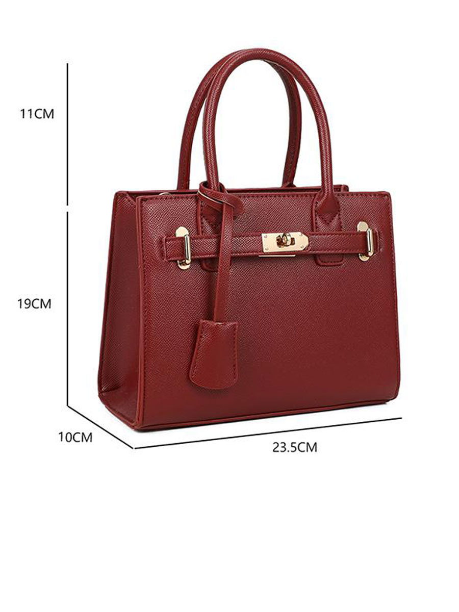 Deze mooie donkerrode schoudertas in lederlook heeft een goudkleurige siergesp. De tas heeft een verstelbare en afneembare schouderband zodat je hem ook als handtas kan dragen. De tas sluit met een ritssluiting. Binnenin heeft het twee open vakken en één met een ritssluiting.