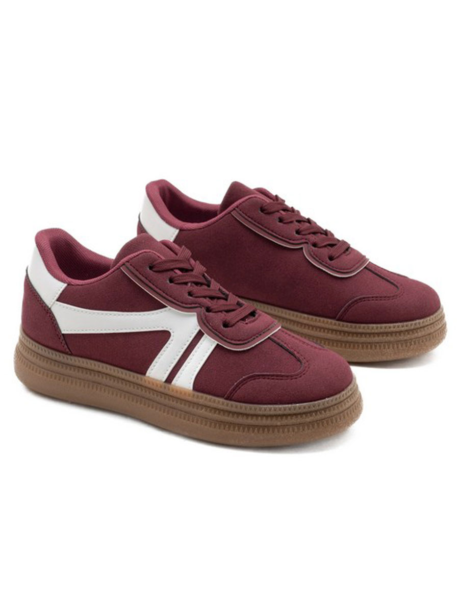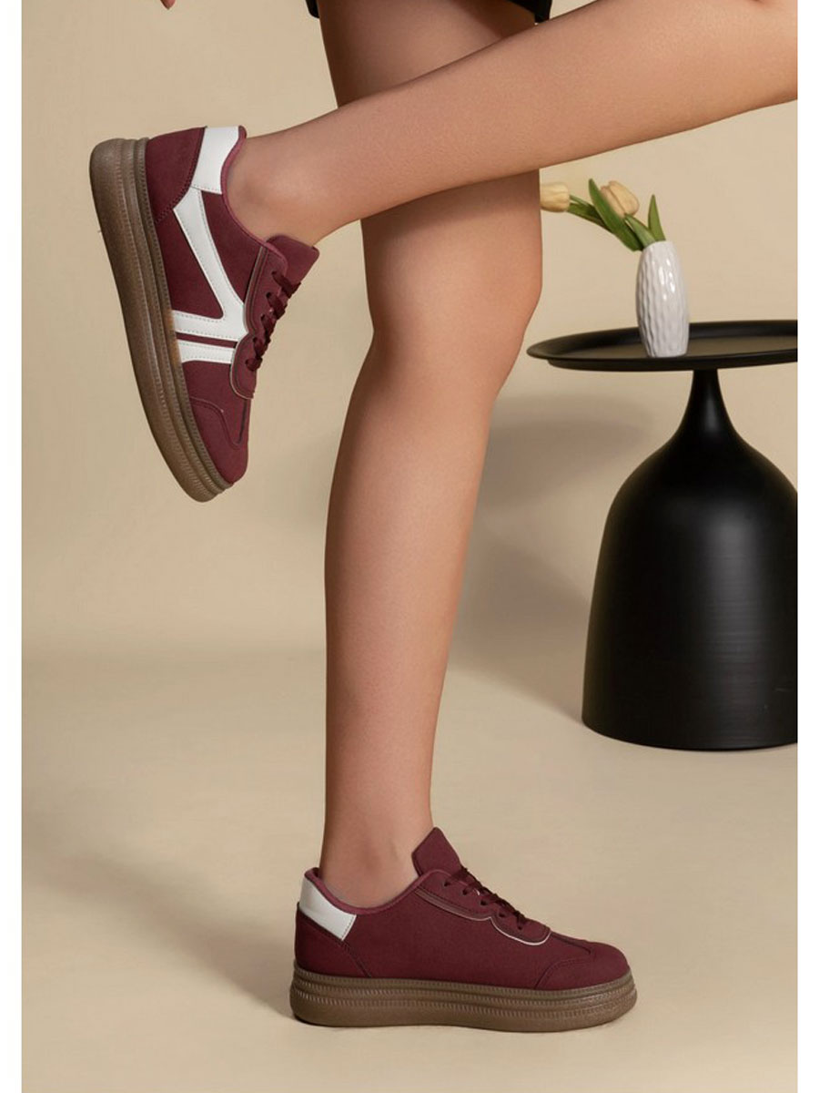 Deze trendy bordeaux sneakers met suéde look zijn helemaal geweldig! De sneakers met witte strepen hebben een hogere zool en uitneembare binnenzool.