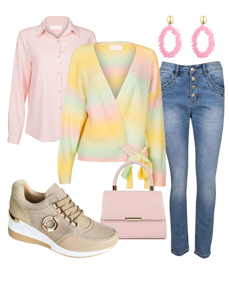 Dit leuke vest met overslag in pasteltinten voelt heerlijk zacht aan. Het vest sluit je met een strik opzij, is one size en te dragen van S (36) t/m XXL (44).