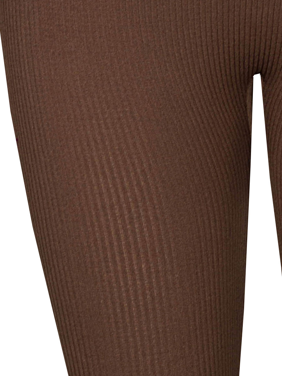 Deze bruine voetloze maillot met fijne ribstructuur is een echte essential voor elke dag. De soepele, elastische stof vormt zich prachtig naar het lichaam en biedt ultiem draagcomfort. Dankzij het ribmotief krijgt de maillot een moderne, luxe look die je eenvoudig combineert met zowel casual als geklede outfits. Het voetloze design maakt dit item extra veelzijdig: draag hem onder een jurk, rok of tuniek, of gewoon als comfortabele legging voor thuis. De brede tailleband zorgt ervoor dat de maillot stevig blijft zitten en toch heerlijk zacht aanvoelt.